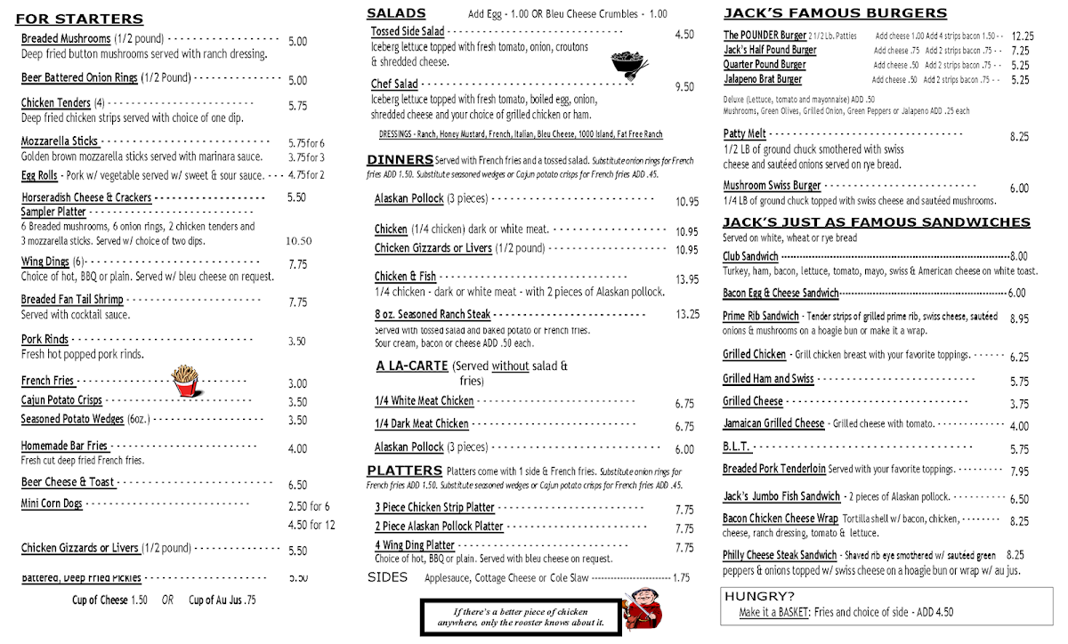 Welcome to Jack's Bar & Grill, a gem nestled in the heart of Lakeville, Indiana. This vibrant eatery offers a delightful array of comfort food that keeps both locals and travelers coming back for more. The menu features standout dishes like the Deluxe jalapeno brat burger and the flavor-packed philly cheese steak, which have garnered rave reviews from patrons. For those seeking a fun night out, Jack's hosts events like karaoke, creating a lively atmosphere filled with laughter and music.